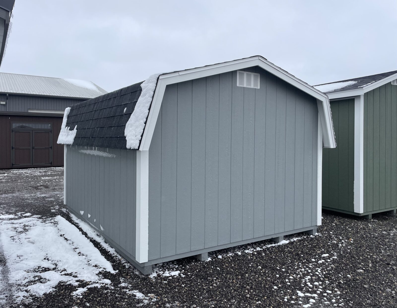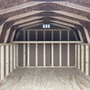 This 10×12 Mini Barn combines timeless barn-inspired design with practical storage solutions such as a 2′ loft at the perfect height for items needed within easy reach. Featuring durable SmartSide and a dimensional shingle roof, this shed is built to protect your lawn equipment or seasonal items for years to come.