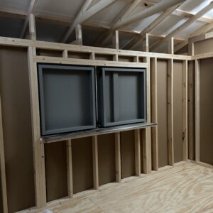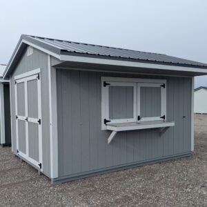 Turn your backyard or campsite into the ultimate hangout with this charming Quaker-style shed. With a 32″ overhang and stainless steel bar counter, this shed is designed to be as functional as it is fun. It also features 78″ tall double doors to allow for golf cart storage.