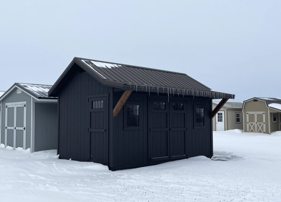 This beautiful shed combines craftsmanship, style, and functionality. Whether you’re looking for a workshop, a hobby space or additional back-yard storage, this shed has you covered. It’s higher-than-standard walls and 4′ loft maximize storage space, and the 22×27″ windows and transom windows in the doors bring in lots of natural light.