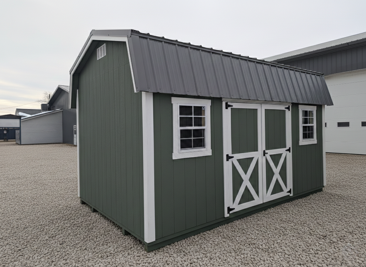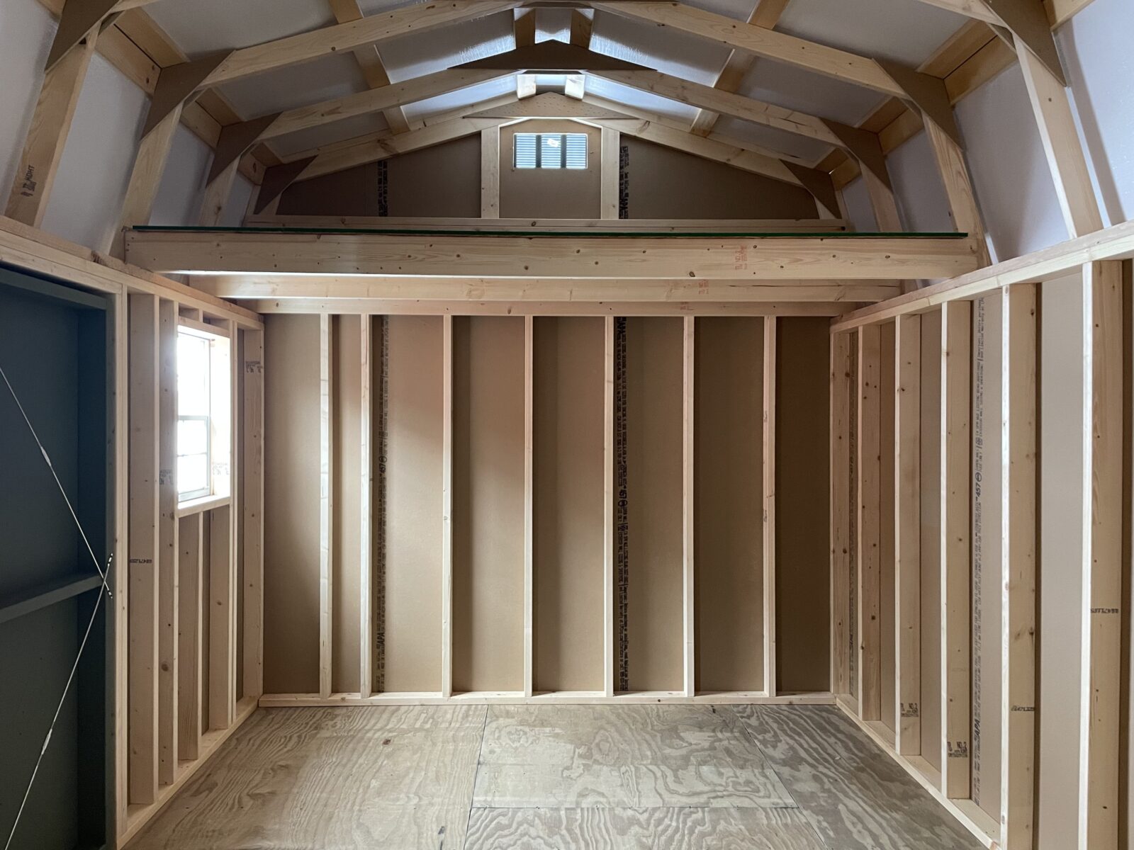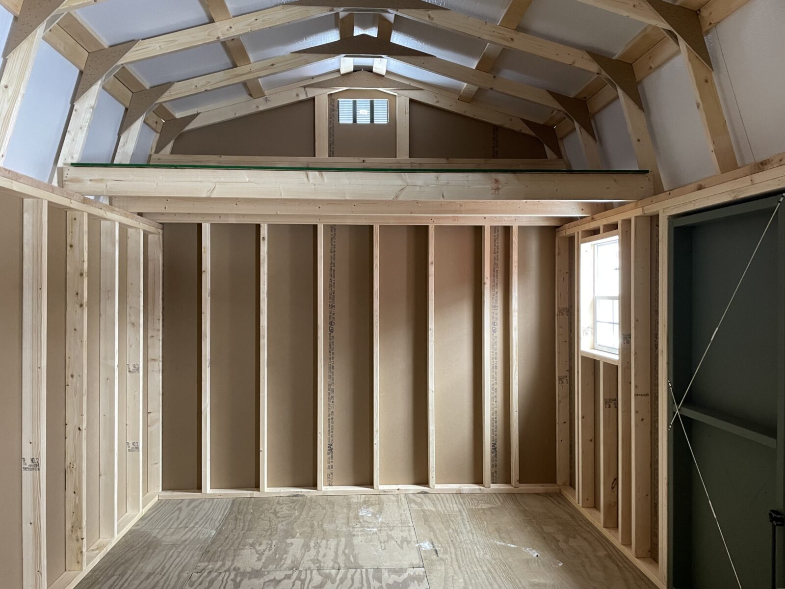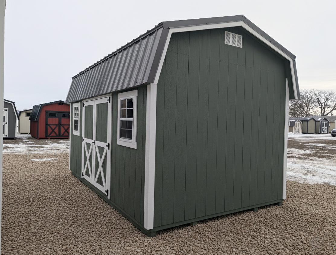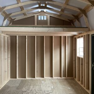 Built with both function and style in mind, this Highwall shed is both practical and eye catching. The 22″x27″ windows add a touch of charm and bring lots of natural light into the space. Two 4′ lofts utilize vertical space while providing open floor space below.