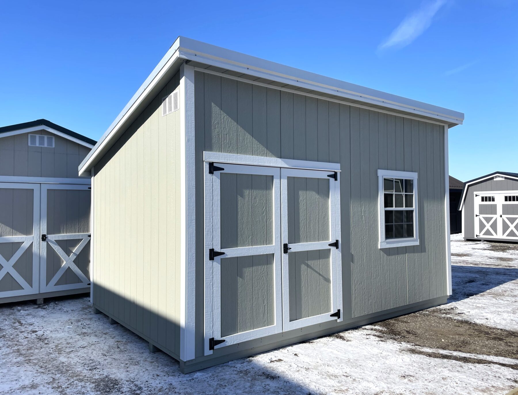 This single-slope roof storage shed offers a clean, contemporary look that blends seamlessly into any backyard or property.  With its simple lines and modern profile, it is a versatile space designed to adapt to your lifestyle-whether you’re creating a quiet home office, a cozy she shed, or a functional storage solution.