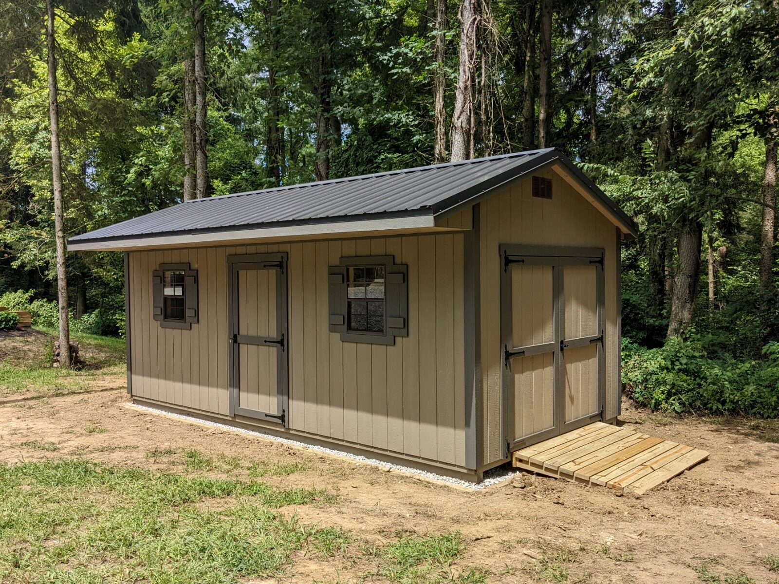This attractive shed design gives a nod to the carriage sheds of the olden days. With a large overhang, the Quaker Sheds give you ample space to get out of the rain while opening the doors. If you want to design your own shed, take a look at our 3-D builder. If you want to take advantage of getting a shed quickly, take a look at our available inventory.